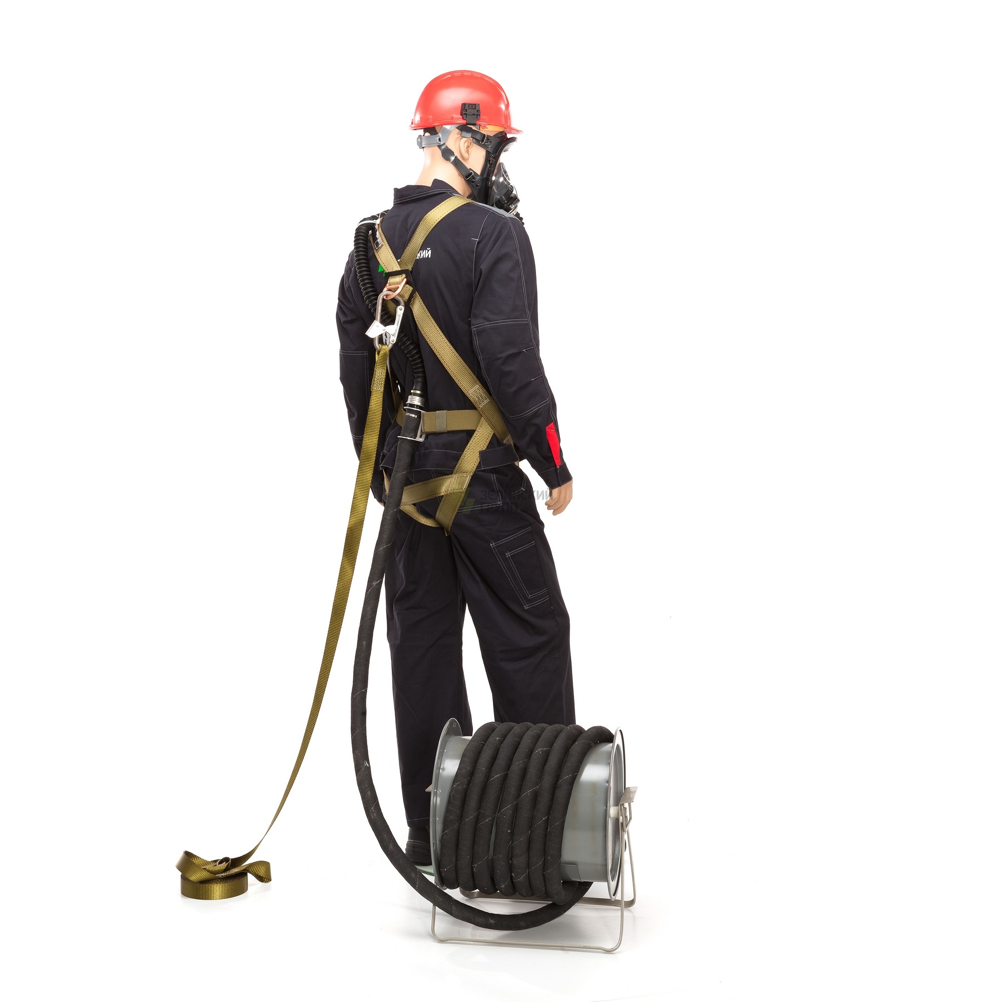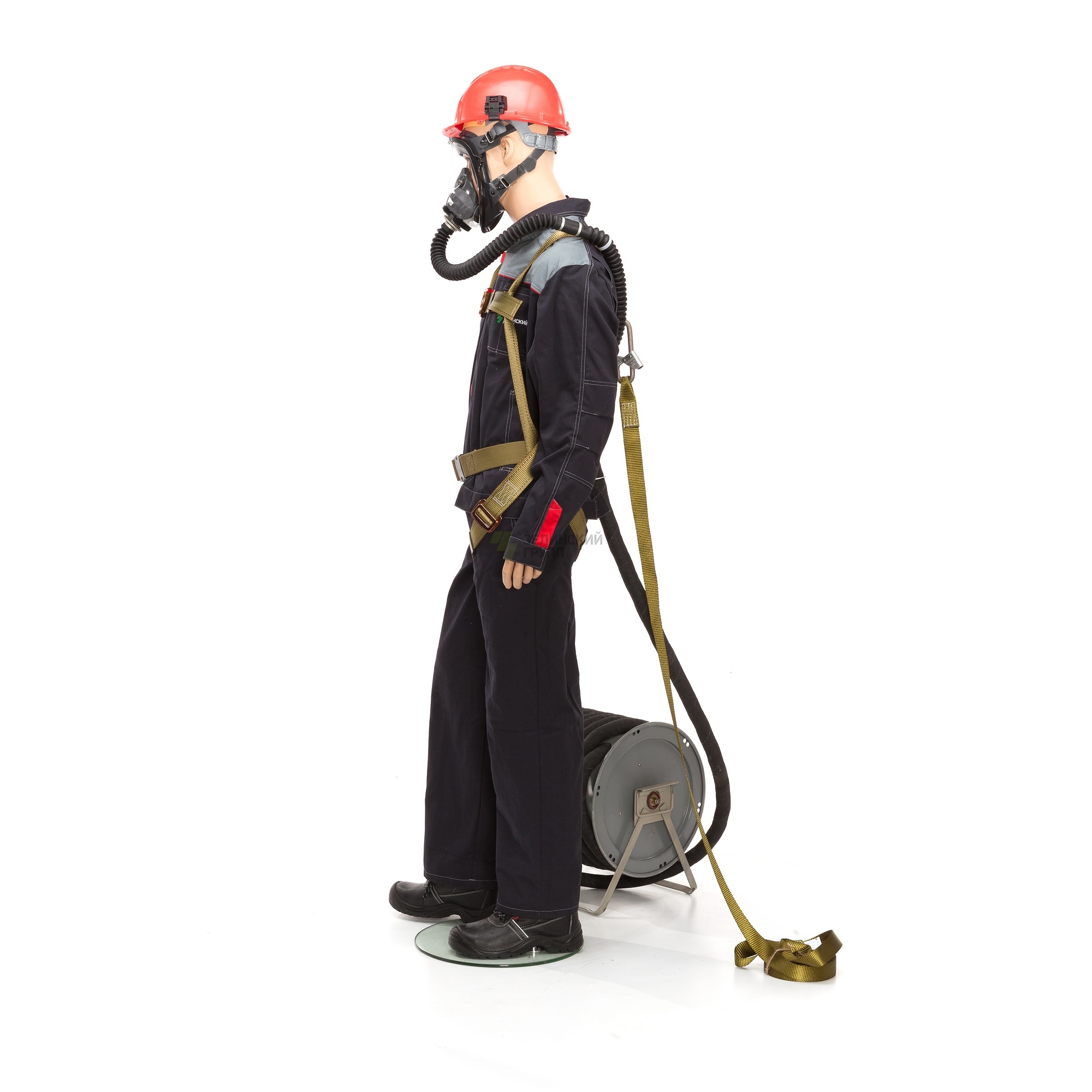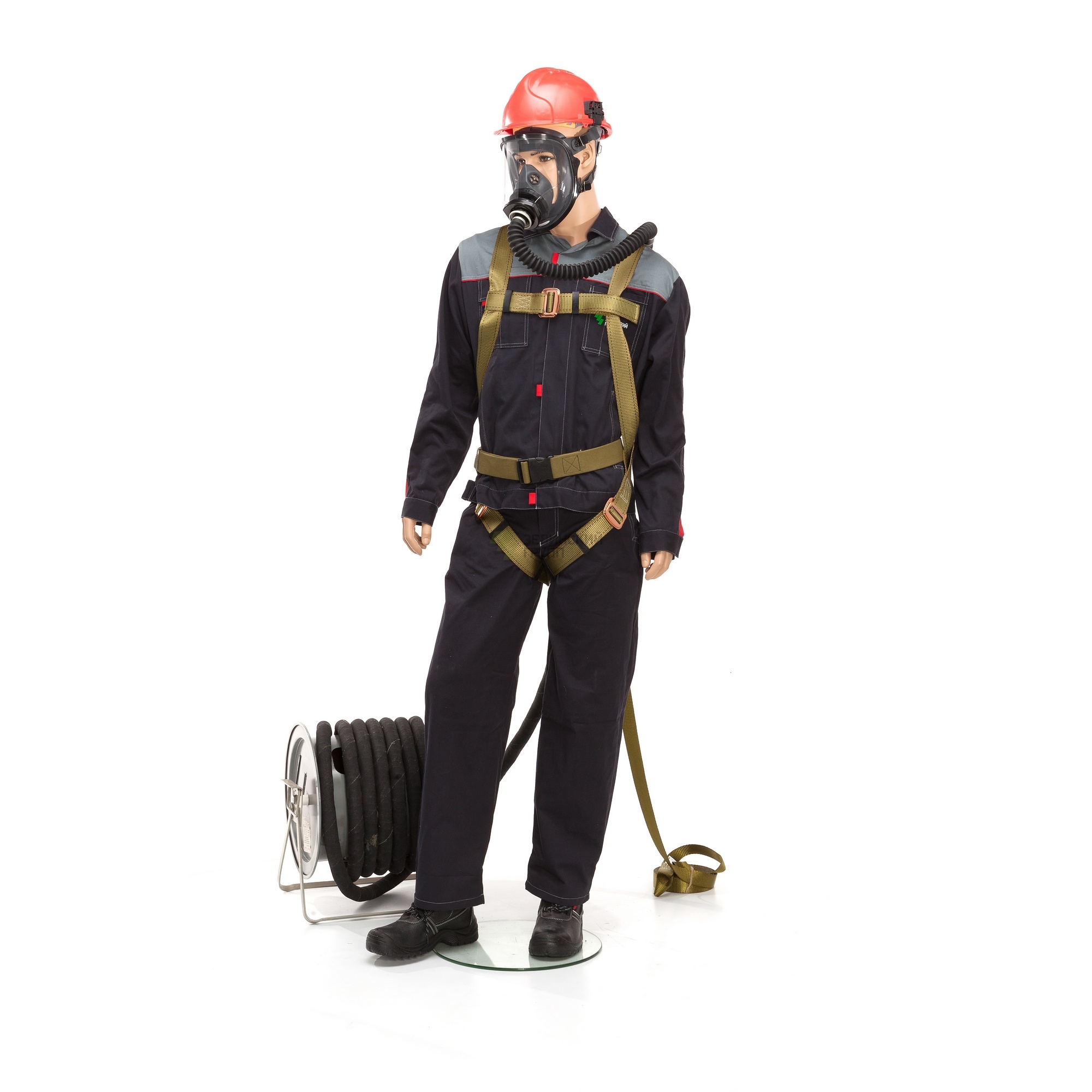Для работы на высоте в комплектацию противогаза ПШ-1 введена привязь страховочная антистатическая с наплечными и набедренными лямками, а также поясной ремень для крепления амуниции.
