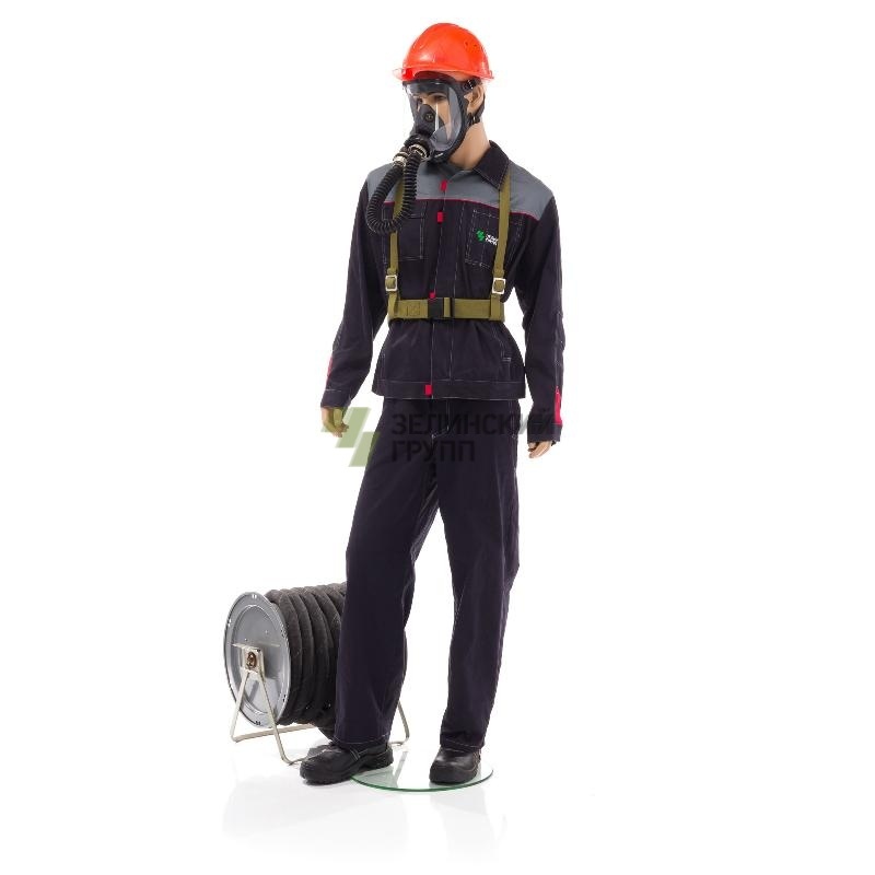 Противогаз представляет одноканальный изолирующий дыхательный аппарат, снабжающий пользователя чистым воздухом через шланг подачи воздуха за счет дыхания человека.