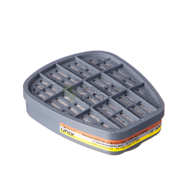 Противогазовый фильтр UNIX 521 A1B1E1 предназначен для очистки вдыхаемого воздуха от органических, неорганических и кислых газов и паров в составе фильтрующего противогаза UNIX или респиратора UNIX.